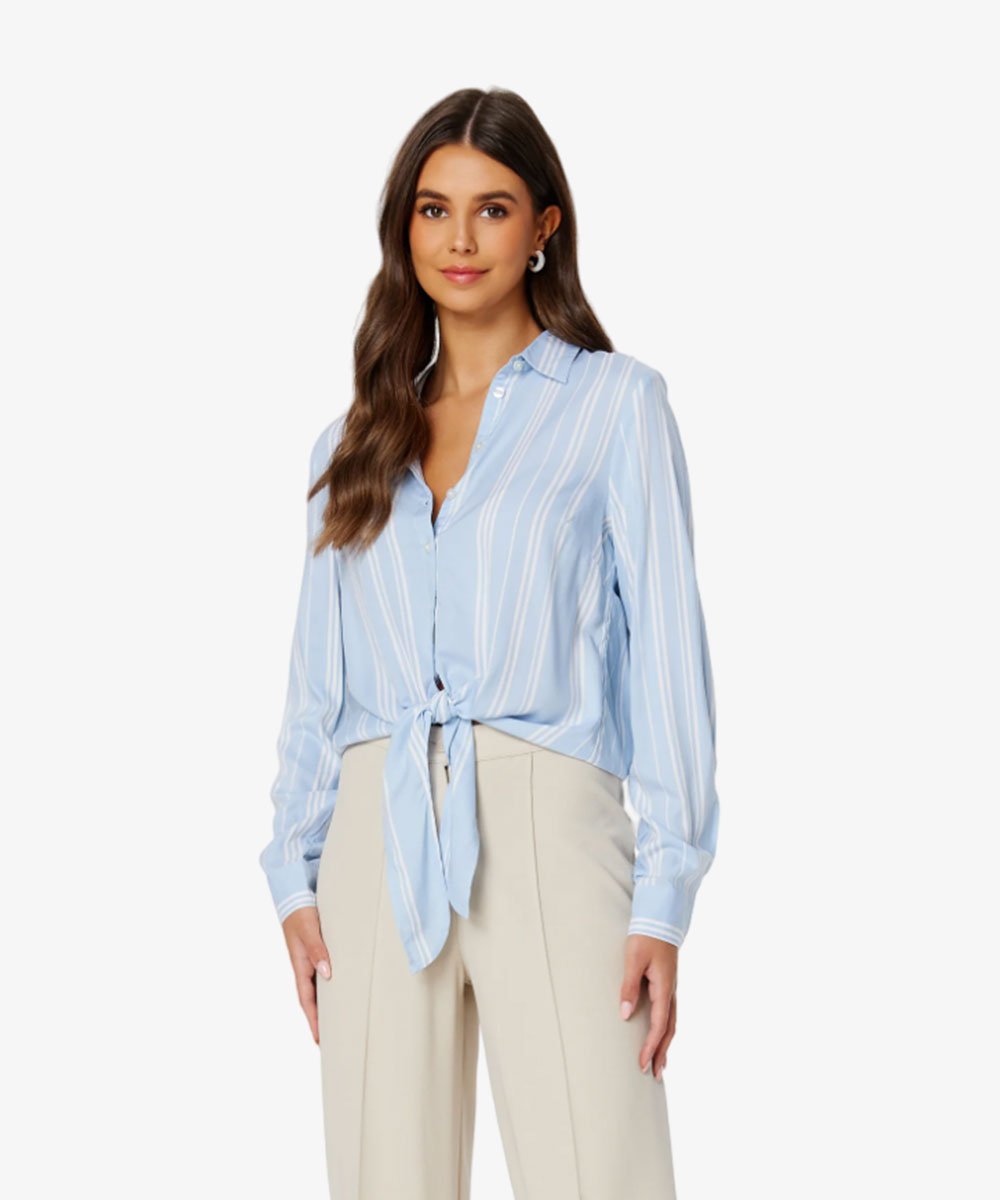 Women Blue & White Relaxed Striped Casual Shirt Tie-up